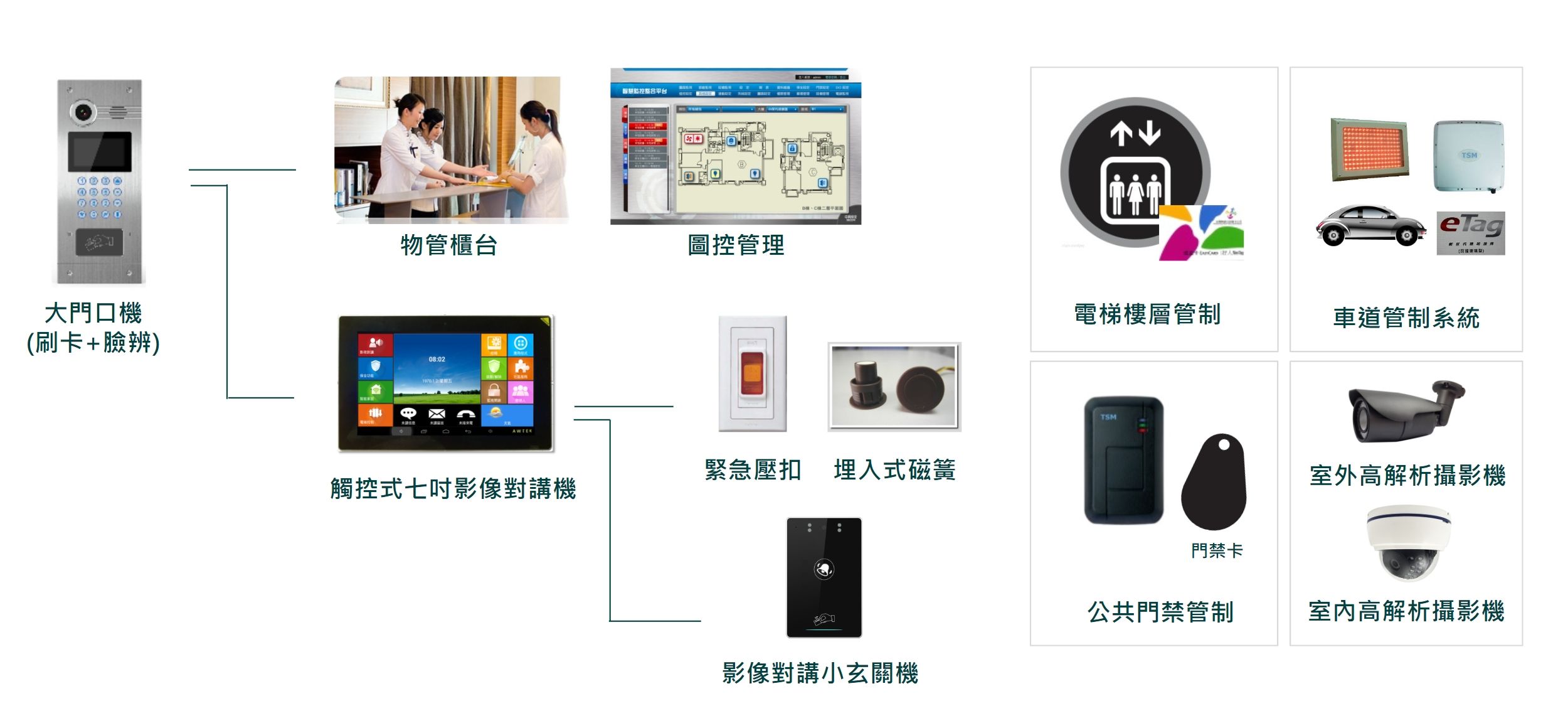 ‧ 8迴路保全系統,可搭配網路型管理員對講管理總機