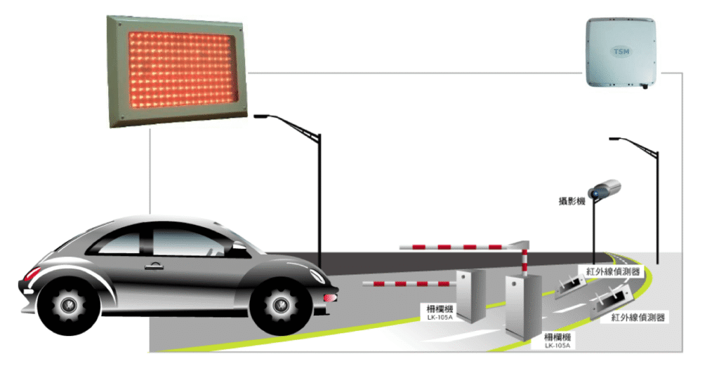 - 利用ETC標籤,透過長距離讀頭讀取,於接近車道入口6~8m,即可連動車道管制設備開啟。
