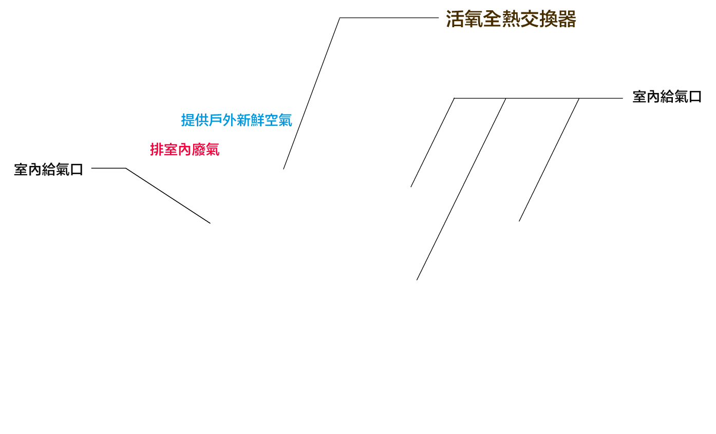 引進戶外新鮮空氣,同時排出室內髒空氣,一進一去,透過「熱核心」達到「溫度交換」和「部份溼度調節」。