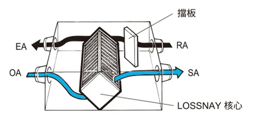 當空調關閉且不需熱交換時LOSSNAY可以自動切換到旁通換氣模式。如此可在過濾外部污染物的同時持簡易易通風功能,無需與外部空氣進行熱交換,即可保持室內空氣品質。